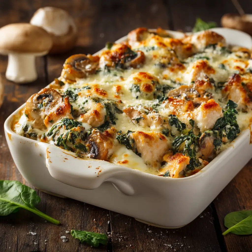 What makes this casserole stand out? It’s the perfect combination of textures and flavors. We use tender chicken, earthy mushrooms, and vibrant spinach, all enveloped in a rich and creamy garlic-parmesan sauce. Unlike other casseroles that can be watery or bland, this recipe has been tested to ensure a thick, luscious sauce that clings to every ingredient. It’s a restaurant-quality meal you can easily make in your own kitchen.