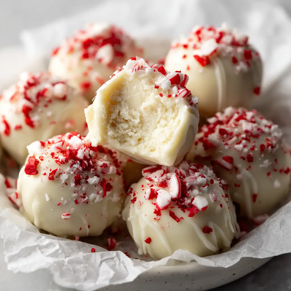 Welcome to your new favorite holiday tradition. These no-bake peppermint balls are the absolute pinnacle of festive treats—effortless to create, yet they deliver a visual and textural masterpiece. Imagine a dense, velvety white cream center that melts in your mouth, all encased in a smooth, hardened white candy shell. The final touch? A heavy encrusting of coarse, glossy shards of red and white peppermint candy canes, offering a delightful crunch and a burst of cool mint flavor.